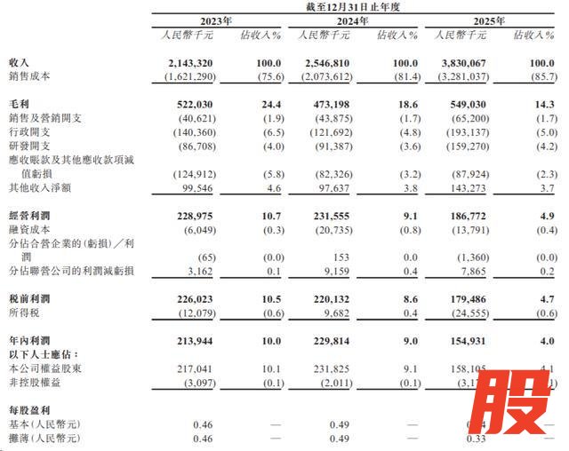 业绩方面,2023年、2024年及2025年,易点天下营业收入分别为21.43亿元、25.47亿元及38.30亿元;年内利润分别为2.14亿元、2.30亿元及1.55亿元。